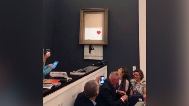 The auction house said a female European collector was the successful bidder, agreeing to pay 1.04 million pounds ($1.4 million) for "Girl With Balloon." But just after the hammer came down, and to the shock of those in the saleroom, the bottom half of the work passed through a shredder concealed in the frame.